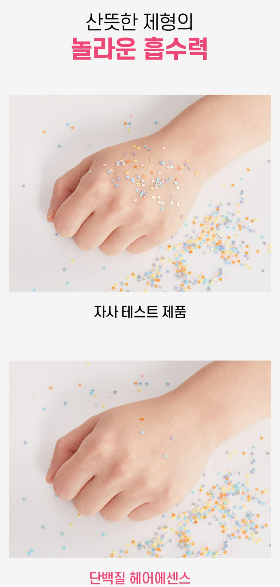 그래서 모발이 손상되거나 건조할 땐 단백질 성분이 포함된 헤어 단백질 에센스, 단백질 트리트먼트, 단백질 앰플들을 사용하시면 좋아요.