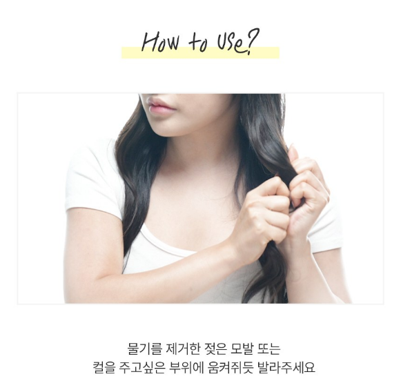 물기를 제거한 젖은 모발 또는 컬을 주고 싶은 부위에 움켜쥐듯 발라주세요.