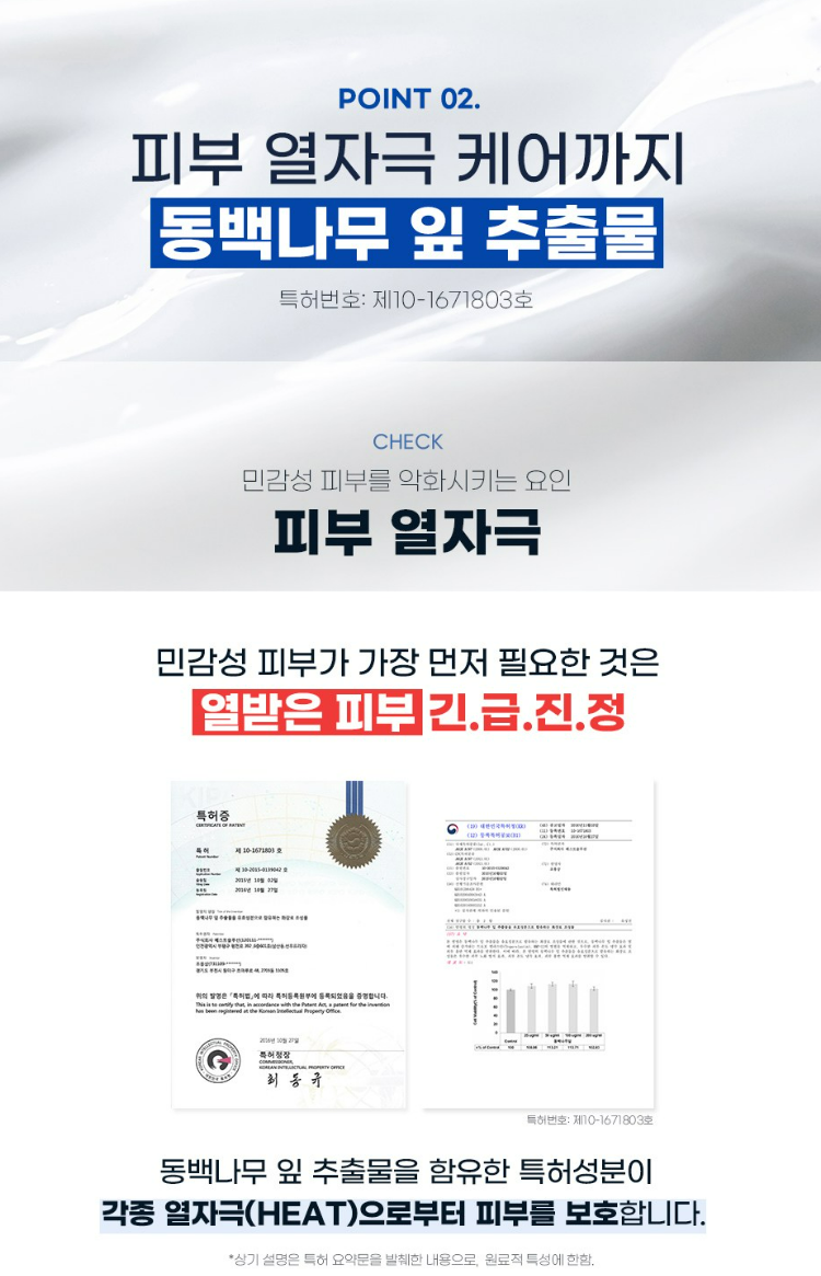 동백나무 잎 추출물을 함유한 특허성분이 각종 열자극으로부터 피부를 보호해요.