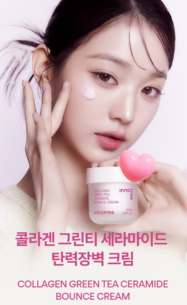 코를 중심으로 눈가 - 양볼 - 턱으로 이어지는 하트모양의 얼굴 부위를 하트존이라고 하는데요. 신체 코어의 힘으로 쉽게 지치지 않듯이, 이니스프리 콜라겐 그린티 세라마이드 크림을 통해 얼굴의 코어인 하트존 피부 강화로 수분 볼륨감과 탱글 탄력광 피부를 만들 수 있어요.