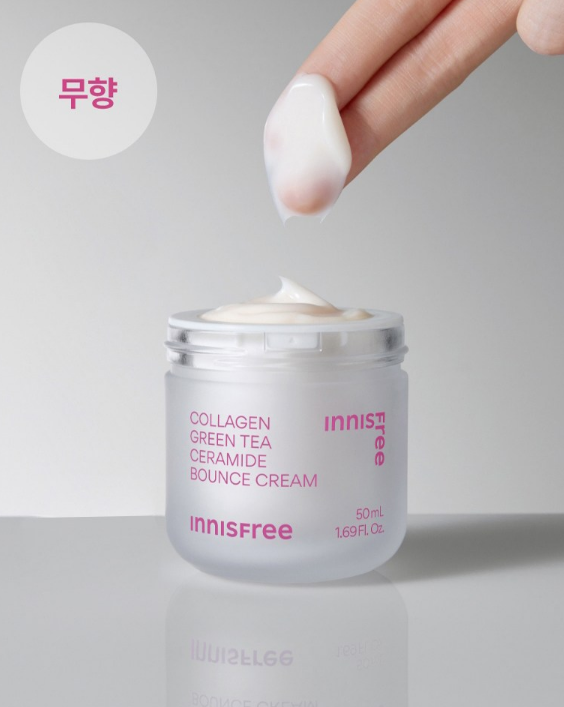 향 또한 없어졌는데요. 기존에 펩타이드 크림에서 향이 있었던 것이 아쉬우셨다면, 이 콜라겐 그린티 세라마이드 크림은 무향의 제품이에요.