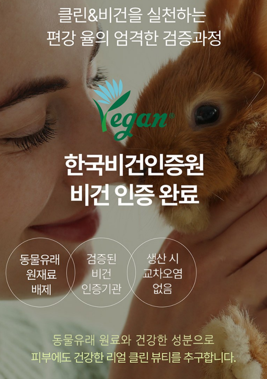 동물 유래 원재료 배제, 검증된 비건 인증 기관, 생산 시 교차 오염 없음과 같이 건강하고 리얼 클린 뷰티를 추구하는 브랜드 제품이에요.