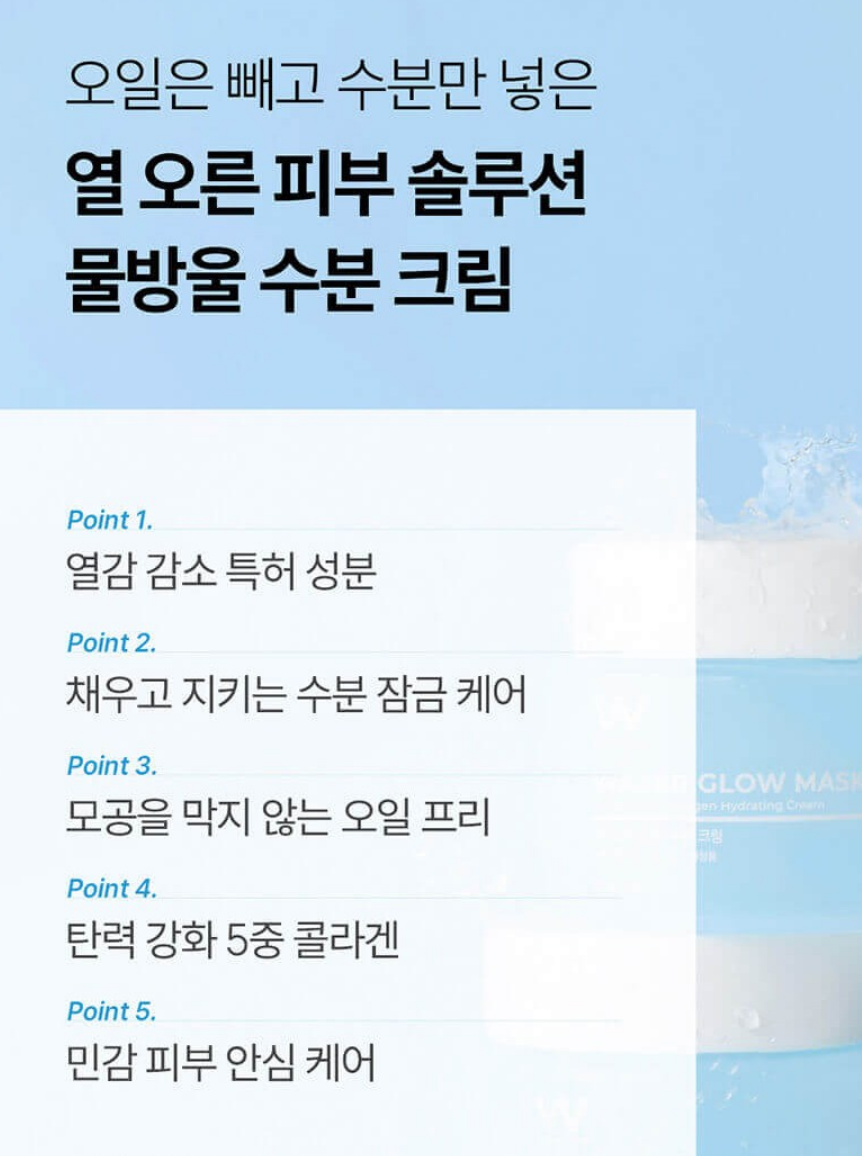 열감 감소 특허 성분, 채우고 지키는 수분 잠금 케어, 모공을 막지 않는 오일 프리, 탄력 강화 5중 콜라겐, 민감 피부 안심 케어가 가장 큰 특징 5가지예요.