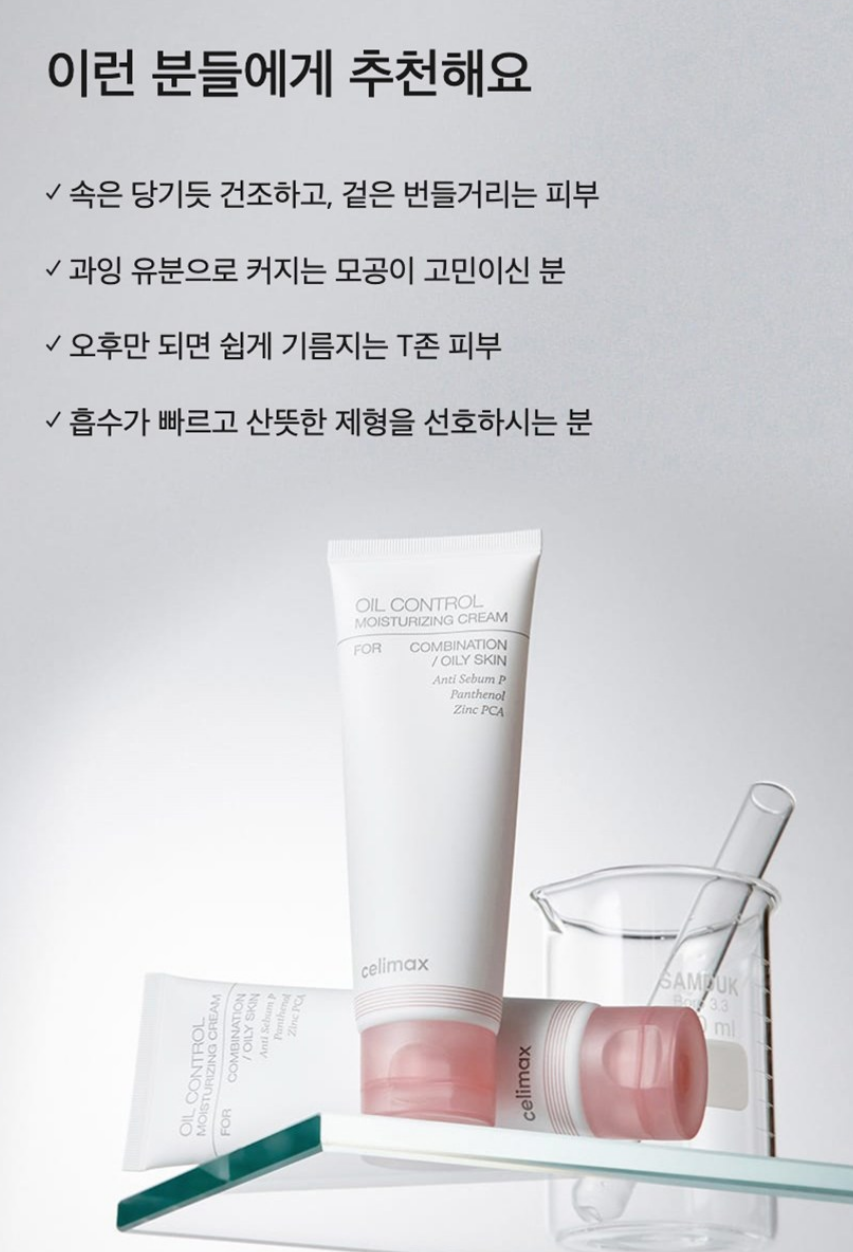 속은 당기듯 건조하고, 겉은 번들거리는 피부이신 분, 과잉 유분으로 커지는 모공이 고민이신 분, 오후만 되면 쉽게 기름지는 T존 피부, 흡수가 빠르고 산뜻한 제형을 선호하시는 분들께 추천드려요.
