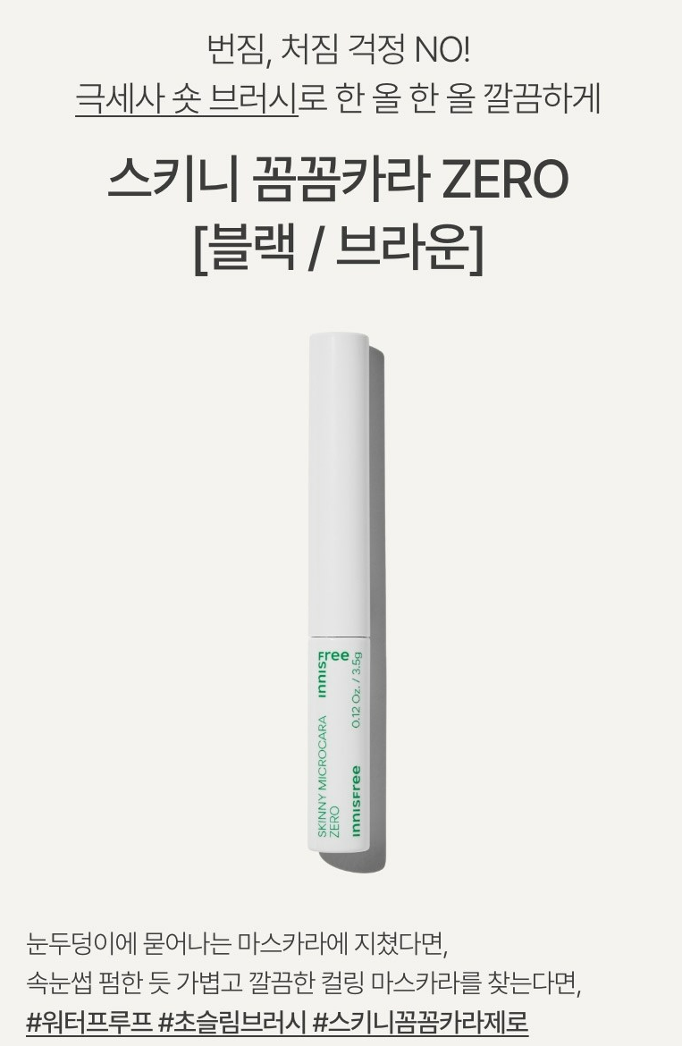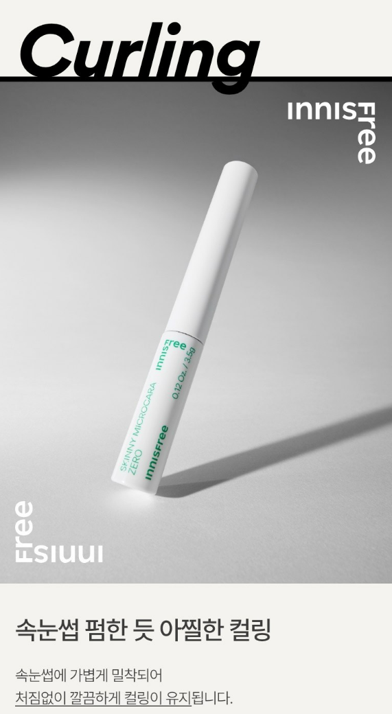 눈두덩이에 묻어나는 마스카라에 지쳤다면, 속눈썹 펌한 듯 가볍고 깔끔한 컬링 마스카라를 찾는다면 번짐, 처짐 걱정 없는 이니스프리 스키니 꼼꼼카라 제로를 사용하시면 돼요.