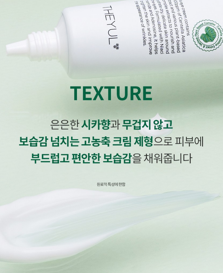병풀추출물과 각종 식물성 추출물이 함유되어 메마르고 건조한 눈가 피부에 영양과 수분을 채워주고 나이아신아마이드와 아데노신이 함유되어 미백과 주름개선에 도움을 주는 아이크림이에요.