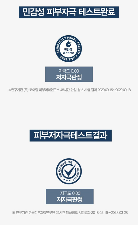 민감성 피부 자극 테스트, 피부 저자극 테스트를 완료한 제품이라 안심하고 사용하셔도 돼요.