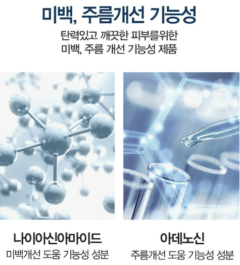나이아신아마이드와 아데노신 성분이 함유되어 있어 탄력있고 깨끗한 미백과 주름 개선 기능을 가지고 있어요.