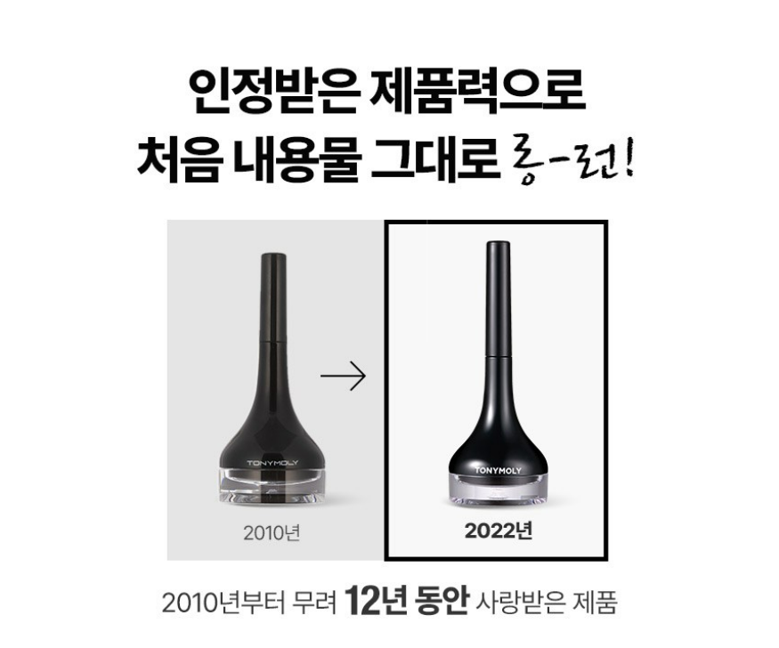 토니모리 백젤 아이라이너는 2010년부터 무려 12년 동안 사랑받은 국민 젤 아이라이너 제품이에요.