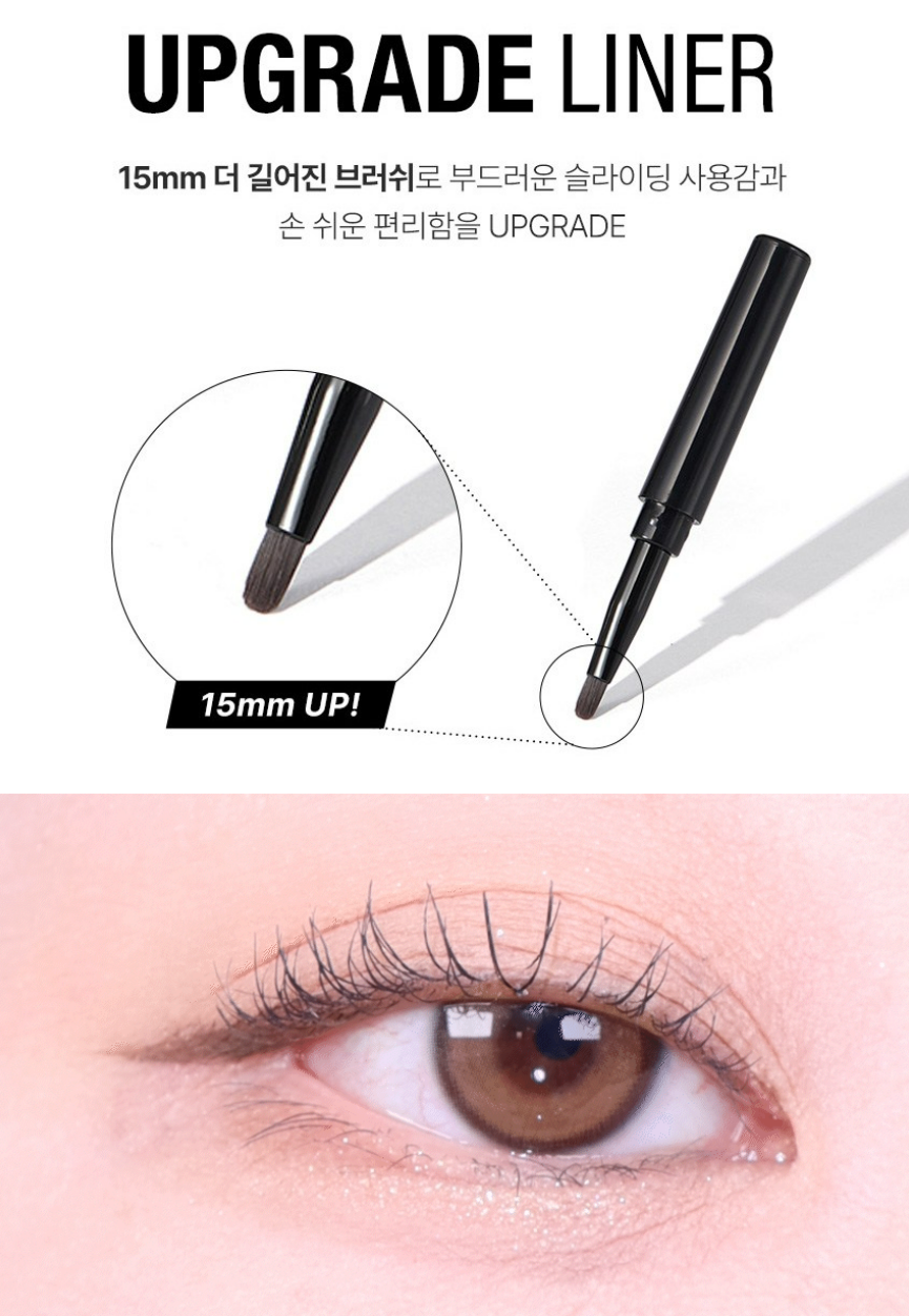 브러쉬가 15mm 길어져 부드러운 슬라이딩 사용감과 손 쉬운 편리함을 업그레이드 시켰어요. 부드러운 고탄력 브러쉬로 초보자도 손 쉽게 눈꼬리 메이크업을 연출할 수 있어요.