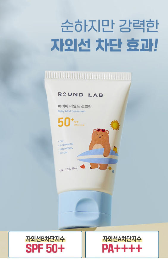 유아 선크림 찾고 계셨나요? 자극 걱정 없이 순한 성분을 담은 라운드랩 베이비 마일드 선크림은 민감한 아기 피부를 위한 유아 선크림이에요.