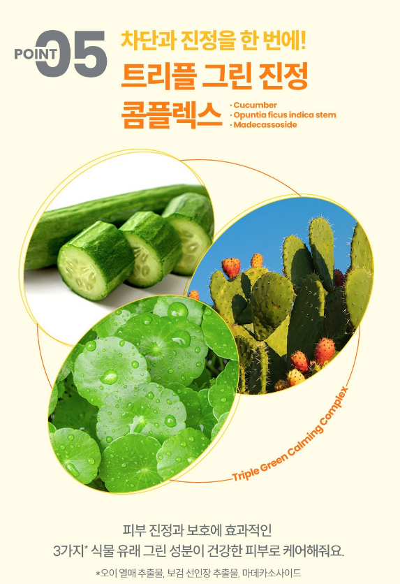 피부 진정과 보호에 효과적인 3가지 식물 유래 그린 성분이 건강한 피부로 케어 해줘요.