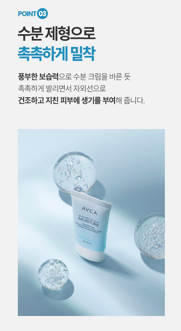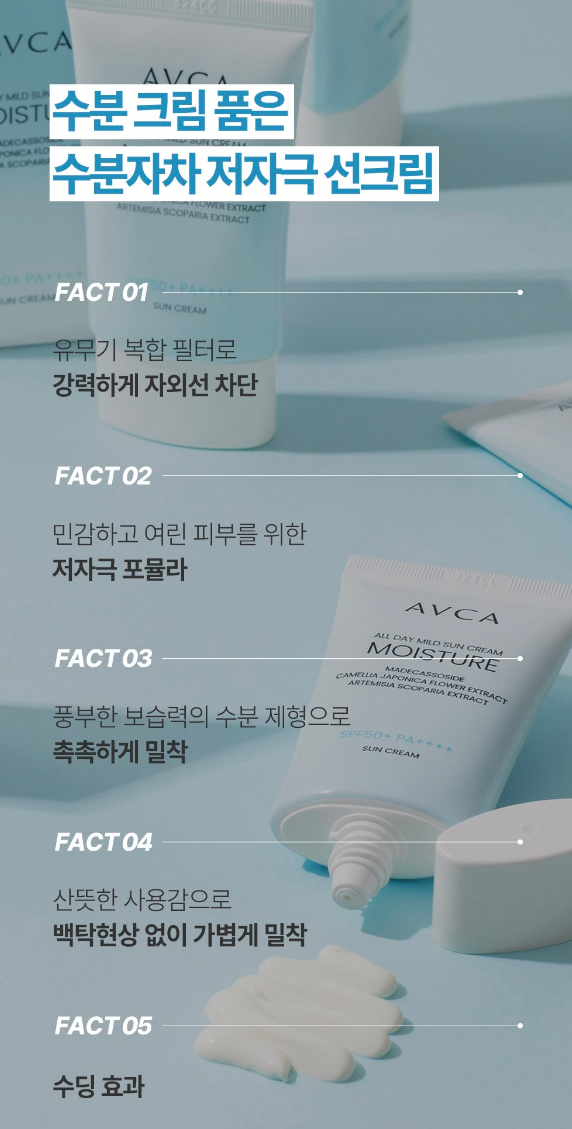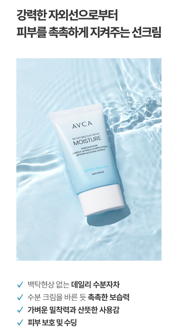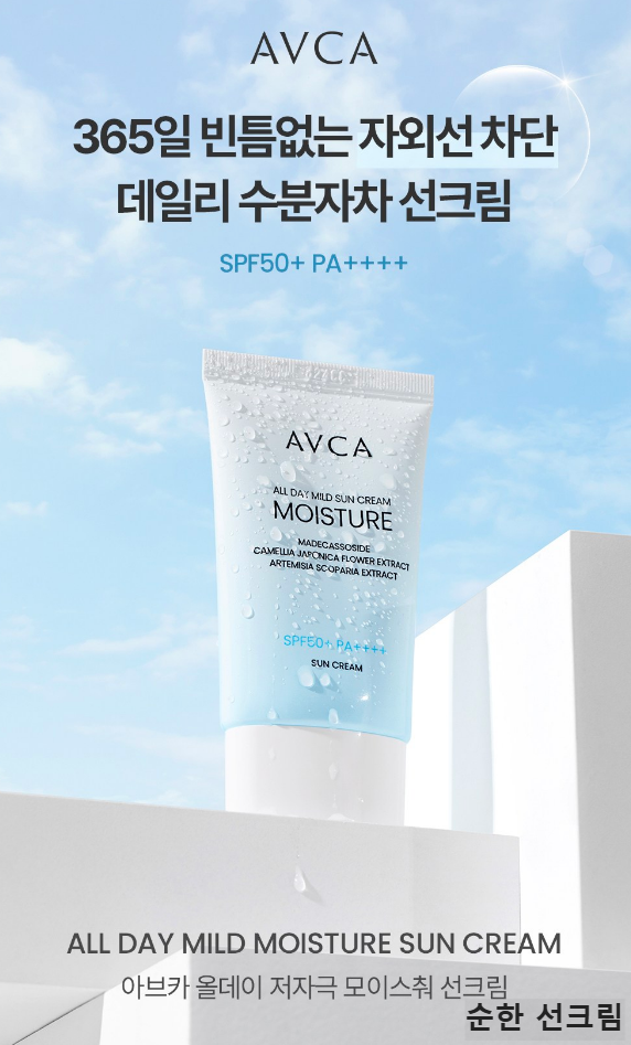 순한 선크림 찾고 계셨나요? 자극 없이 편안하게 바를 수 있는 제품을 찾고 있다면 아브카 올데이 저자극 모이스춰 선크림을 주목해보세요. 백탁 없이 자연스럽게 밀착되며 수분 크림을 바른 듯 촉촉한 보습감을 선사하는 순한 선크림이에요.