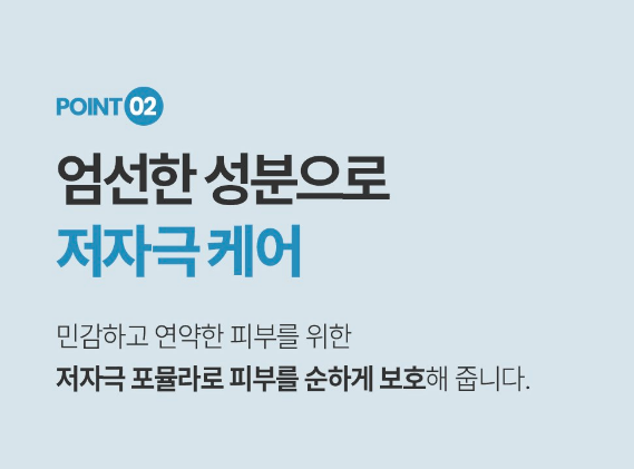 민감하고 연약한 피부를 위한 저자극 포뮬라로 피부를 순하게 보호해줘요.