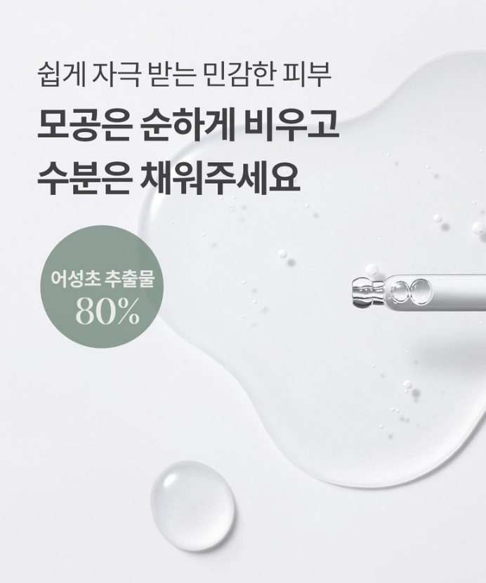 모공이 막혀 피부 고민이 심화되지 않도록 민감 피부를 순하게 진정 시키는 효과를 가지고 있는데요. 어성초 성분으로 피지 관리를 해주고, 티트리 컴플렉스로 모공 케어를 해주며 마데카소사이드로 진정 효과를 준답니다.