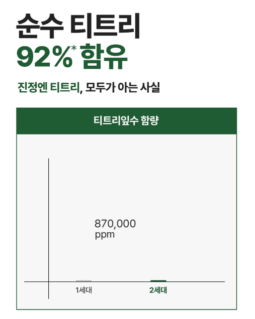 티트리가 피부 진정에 좋다는 사실은 많이 알려져있는데요. 순수 티트리가 92%, 870,000ppm 함유되어 있기 때문에 피부 진정에 확실한 효과를 볼 수 있으실 거예요.