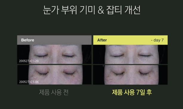 눈가 부위 기미와 잡티 또한 제품 사용 전과 제품 사용 7일 후가 다른 모습을 보실 수 있어요.