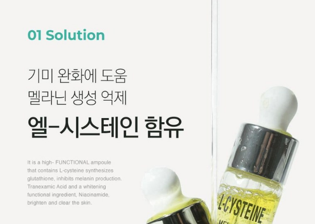 기미 완화에 도움을 주고 멜라닌 생성을 억제 시키는 엘-시스테인이 함유되어 있어요.