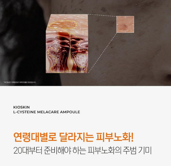 그런 여러분을 위해 오늘은 기미 잡티 앰플 한 가지를 준비했어요. 7일 기미 앰플이라고 불러도 좋을만큼 7일만에 효과가 보인다는 키오스킨 엘시스테인 멜라케어 앰플인데요! 그럼 지금부터 소개해보도록할게요~