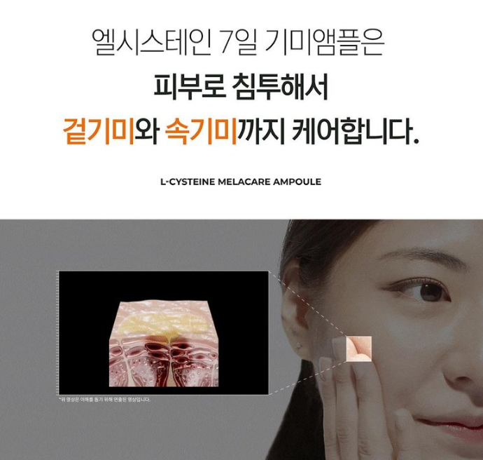 엘시스테인 7일 기미앰플은 피부로 침투해서 겉기미와 속기미까지 케어해줘요!