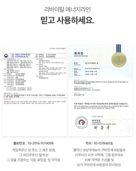 각종 증명서와 특허증으로 믿고 사용할 수 있는 제품이에요!