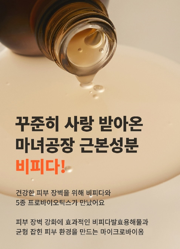 마녀공장만의 특별한 배합 비피다 바이옴과 5종 프로바이오틱스 성분이 기초부터 탄탄한 건강한 피부 장벽을 만들어줘요.