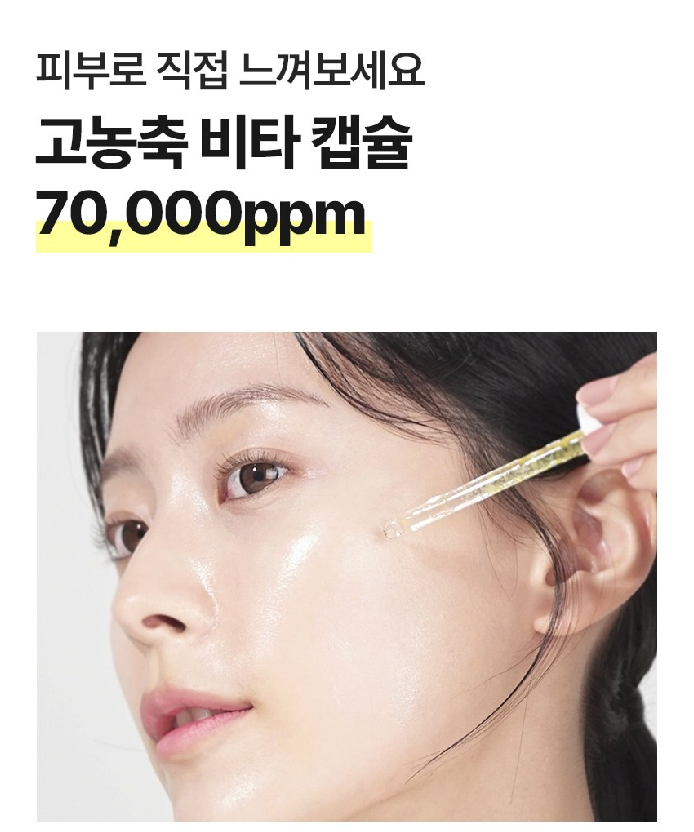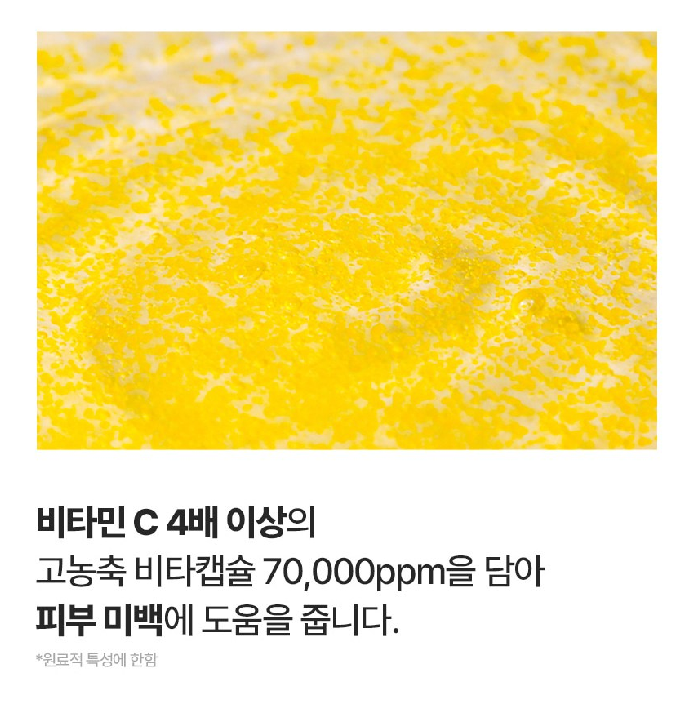 고농축 비타 캡슐 70,000ppm이 함유되어 있어요. 비타민 C 4배 이상의 고농축 비타캡슐 70,000ppm을 담아 피부 미백에 도움을 준답니다.