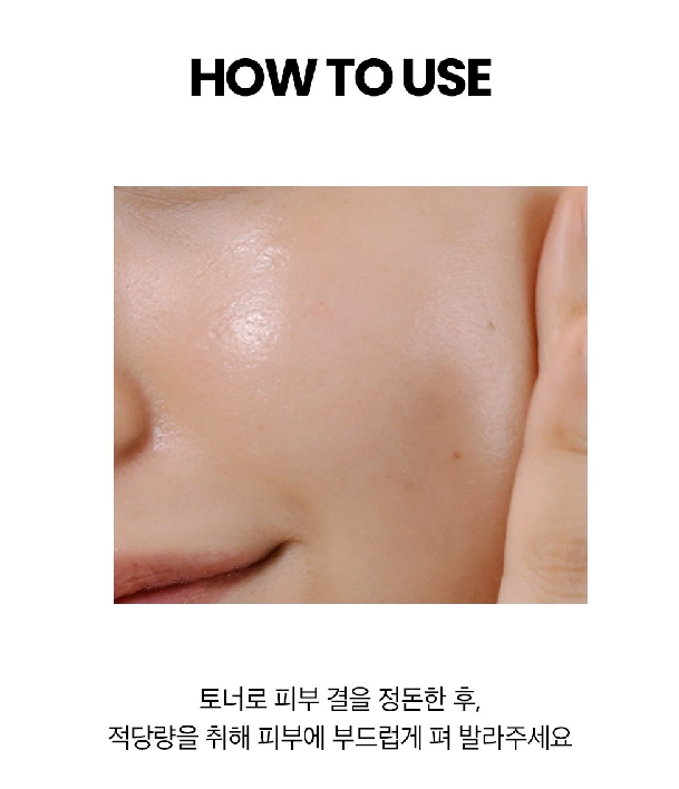 토너로 피부 결을 정돈한 후 적당량을 취해 피부에 부드럽게 펴발라주세요.