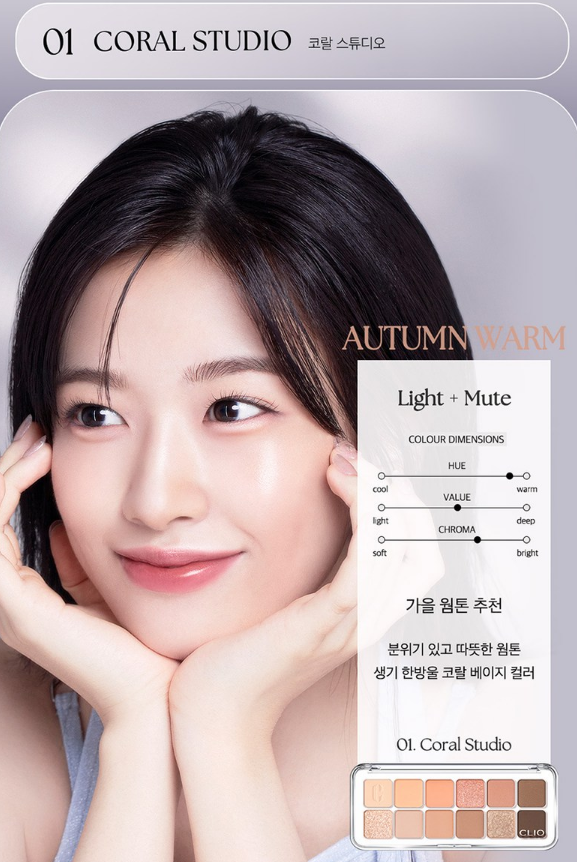 가울 웜톤 분들이 쓰기 좋은 색상이에요. 분위기 있고 따뜻한 웜톤 컬러에 생기 한방울 코랄 베이지 컬러로 구성되어 있답니다.