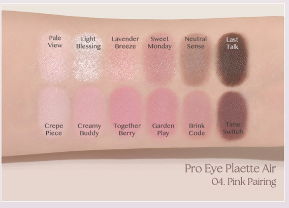 다채로운 라이트 핑크와 모브 컬러로 이루어져 여쿨라 분들이 사용하기 좋은 팔레트예요.