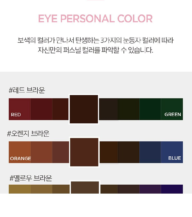 보색의 컬러가 만나서 탄생하는 3가지의 눈동자 컬러에 따라 자신만의 퍼스널 컬러를 파악할 수 있어요.