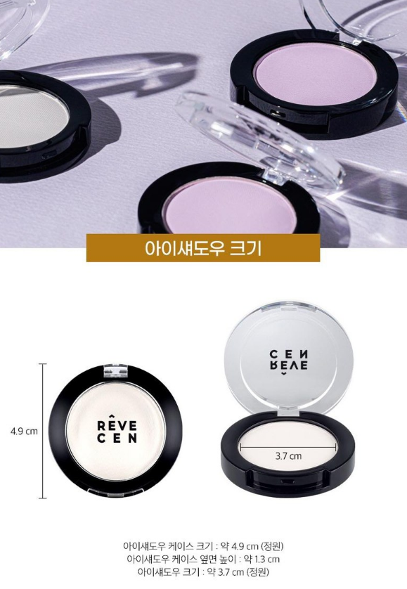 아이섀도우 케이스 크기는 약 4.9cm, 케이스 옆면 높이는 약 1.3cim, 아이섀도우 크기는 약 3.7cm라고 하니 참고하세요!