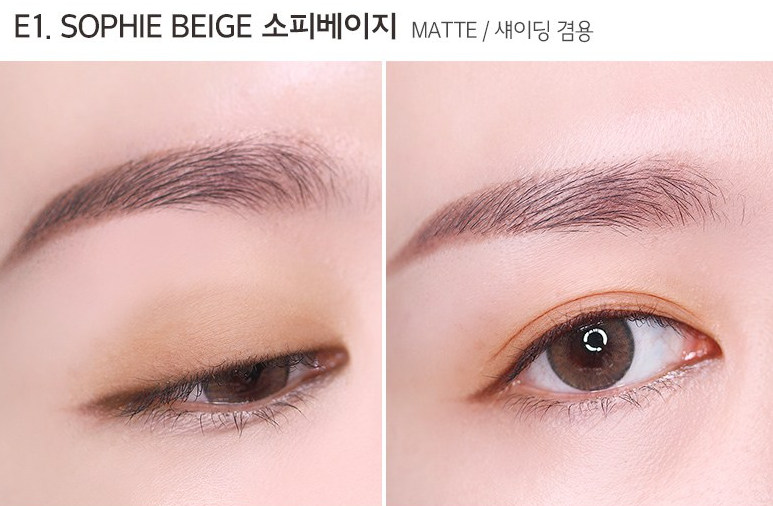 소피베이지 컬러는 매트 타입으로 섀이딩 겸용이 가능한 새도우예요. 라이트베이지 브라운이 주는 따뜻한 음영감이 특징이랍니다.