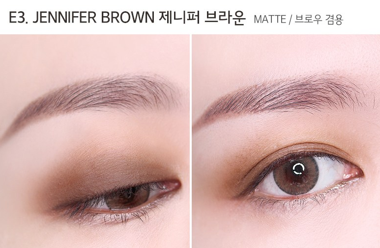 제니퍼 브라운 컬러는 매트타입으로 브로우 겸용으로 사용할 수 있어요. 다크 브라운이 주는 부드러운 모던함이 특징이랍니다.