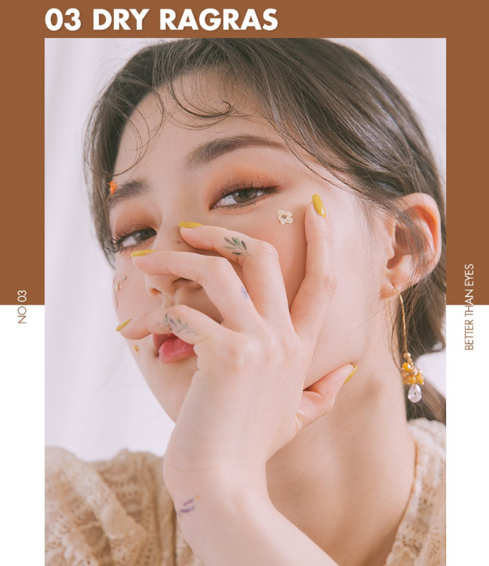 곱디 고운 매트 제형이 눈가를 뽀송하게 정리해줘 크리즈 현상 없이 유지해주며 촤르르 펼쳐지는 촉촉한 오팔 펄 글리터로 눈가에 텁텁함 없이 투명하게 올라가 영롱 메이크업을 완성해줘요. 또 말린 꽃에서 찾은 부드러운 컬러로 눈가를 물들여주는 섀도우랍니다.