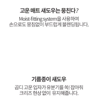 별도의 파우더, 프라이머를 쓰지 않아도 고운 입자가 눈가를 깨끗하게 정리해줘요.