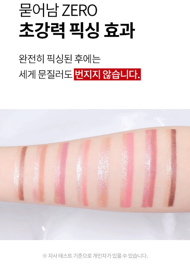 완전히 픽싱된 후에는 세게 문질러도 번지지 않아요!