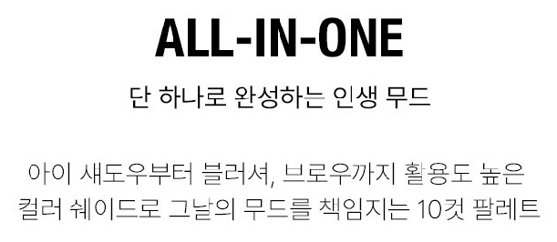 아이 섀도우부터 블러셔, 브로우까지 활용도 높은 컬러 쉐이드로 그날의 무드를 책임지는 10컷 팔레트예요. 단 하나로 무드있는 메이크업을 완성할 수 있답니다!