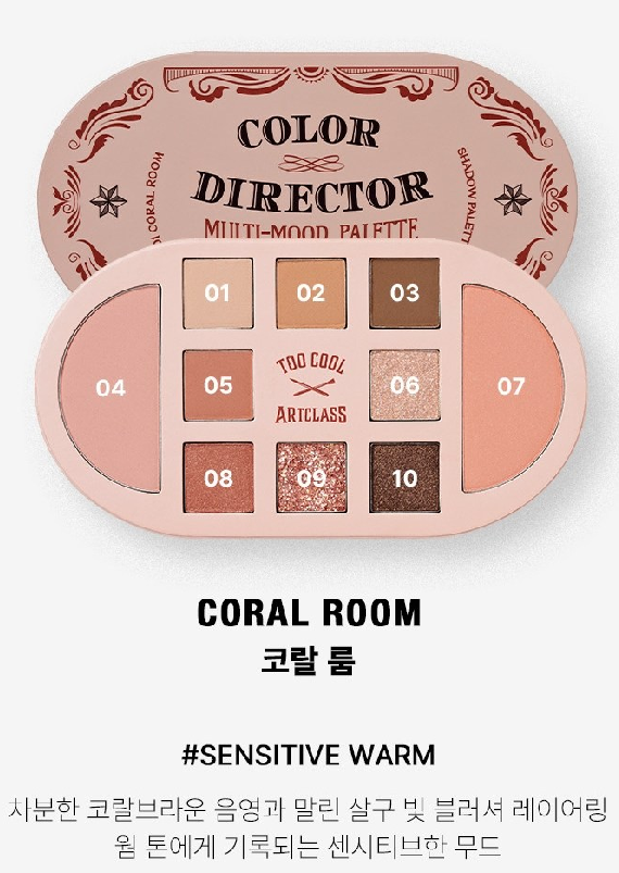 그래도 가장 중요한 것은 역시 색상이겠지요?! 오늘은 색상이 예쁜 아이섀도우 팔레트 제품 한 가지를 소개해볼거예요. 바로 투쿨포스쿨 아트클래스 컬러디렉터 멀티 무드 팔레트인데요. 그럼 포스팅 시작해볼게요~!