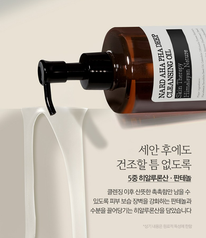 부케가르니 나드 딥 클렌징 오일은 묵은 각질을 부드럽게 용해하는 AHA 성분과 자극을 최소화한 PHA 성분을 함유해 피부 부담 없이 메이크업과 각질을 깨끗하게 씻어줘요.