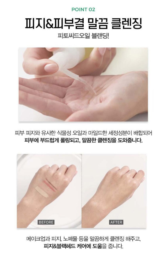 피부 피지와 유사한 식물성 오일과 마일드한 세정 성분이 배합되어 피부에 부드럽게 롤링되고 말끔한 클렌징을 도와줘요. 또한 메이크업과 피지, 노폐물 등을 말끔하게 클렌징 해주고, 피지/블랙헤드 케어에 큰 도움이 돼요.